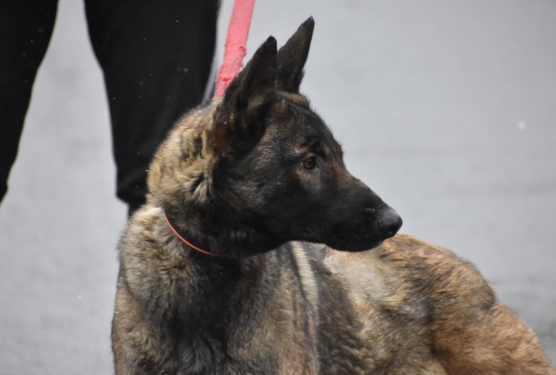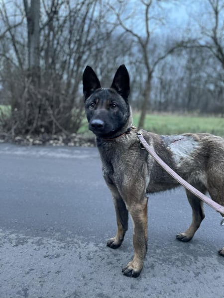Die Hündin ist eine sehr spannende Mischung mit einer beeindruckenden Optik. Ein bisschen Mali, Schäferhund, vielleicht auch noch was anderes? Wir wissen es nicht aber wenn Hazelnut einen anschaut dann macht das was mit einem…als würde sie einm bis in die Seele schauen.