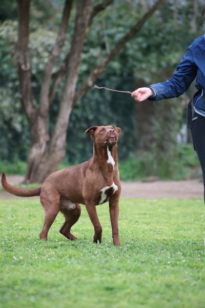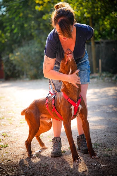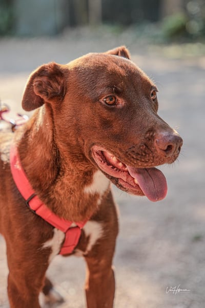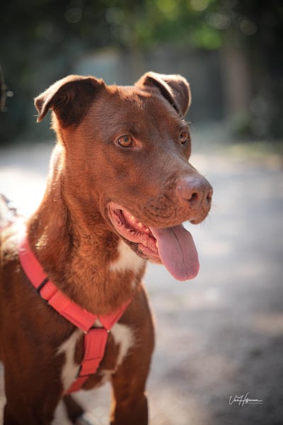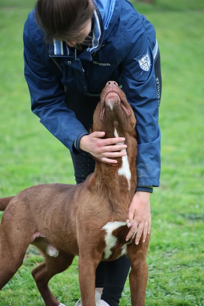 Der Umgang mit anderen Hunden wird derzeit noch trainiert, da seine Verträglichkeit nicht abschließend eingeschätzt werden kann. Auch das Tragen eines Maulkorbs wird aktuell behutsam mit ihm geübt – nicht, weil er gefährlich wäre, sondern weil verantwortungsvolles Training für alle Beteiligten Sicherheit schafft.