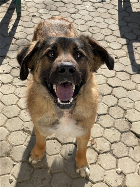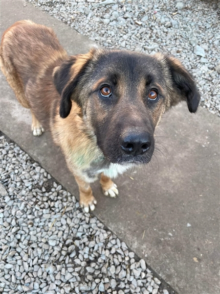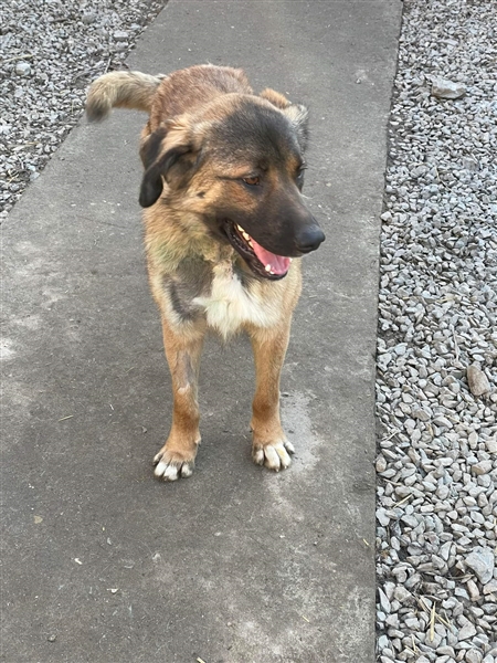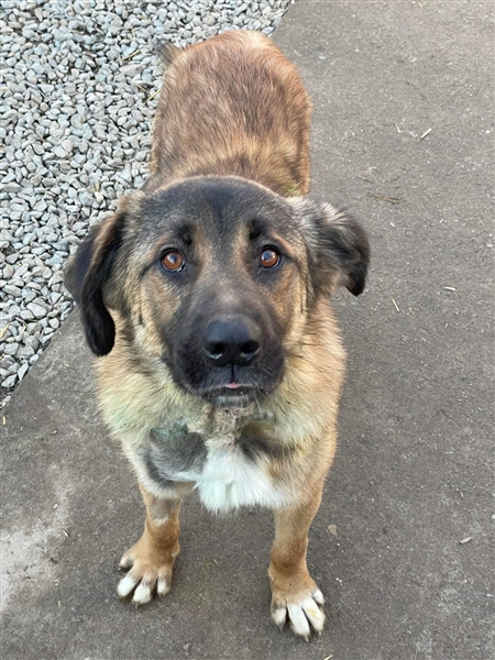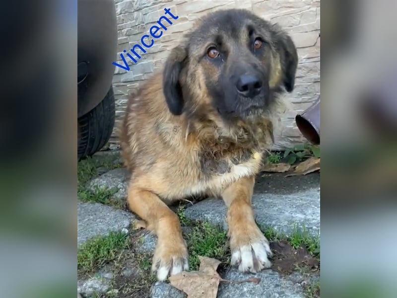 Im Shelter hat Vincent eine " beste Freundin" in seiner Größe ( altdeutsche Schäferhündin) mit der er sich blendent versteht und den Zwinger teilt.