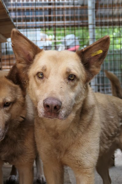 Im Tierheim teilt sich Kumo den Zwinger mit Thiago und einem weiteren Rüden. Kumo und Thiago waren bereits auf dem Hof ein Team und verstehen sich auch im Tierheim bestens.