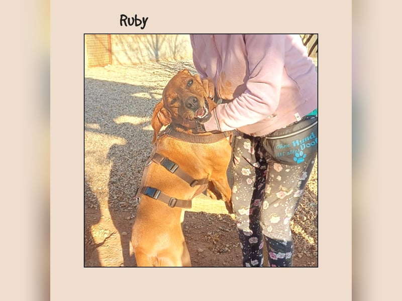 Seit Kurzem lebt die katzenverträgliche Vizsla Mischlingshündin Ruby in einer kleinen aber feinen Hundepension in Friesenhagen, um sich von hier aus ihr 'für immer Zuhause` (verständige Kinder ab 12 Jahre) zu suchen. Ruby ist ca. 2,5 Jahre alt und hat eine Schulterhöhe von ungefähr 55 cm.