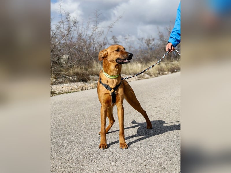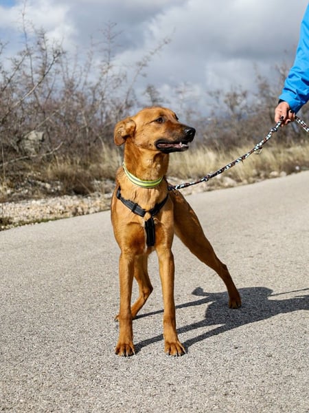 Sein Jagdtrieb ist bislang nicht stark ausgeprägt. Er bewegt sich gerne und hätte Freude an Aktivitäten wie Joggen, Wandern oder Mantrailing; auch eine Begleitung am Pferd können wir uns vorstellen.