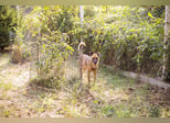 Im Gehege lebt Miro mit einem Rüden und einer Hündin zusammen und das klappt ausgezeichnet. Er ist auch ein guter Kletterer.