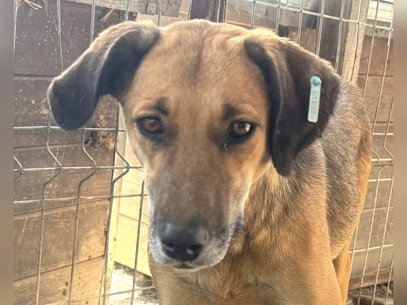 Liebe Nila, du bist fast dein ganzes Hundeleben lang schon im überfüllten Tierheim und hast noch nie erfahren dürfen, was es heißt geliebt zu werden. Ein Niemandshund, wie so viele deiner Freunde, die dieses Schicksal teilen. Du wurdest nicht danach gefragt, ob du auf dieser Welt sein möchtest und schon gar nicht unter diesen Umständen…. Anfang des Jahres 23 wurde die hellbraun-schwarz gefärbte Hündin zum ersten Mal erfasst. Dort saß sie in einem Karton, mit noch wuscheligem, dichten Welpenfell und nichts ahnend, was ihr das Leben noch bringen würde. Nun hat sie sich optisch zu einer stattlichen, kurzhaarigen Schönheit entwickelt, die sich sehen lassen kann. In diesen zwei Jahren, ohne menschlichen Kontakt, ist Nila leider scheu geblieben und begegnete uns mit Skepsis. Unter Bedrängung wollte sie sich am liebsten Unsichtbar machen, ließ sich jedoch streicheln. Hochheben konnten wir sie nicht, da sie durch Unsicherheit in die Luft schnappte. Im Herzen gut, braucht die schöne Nila erfahrene Menschen, die sie langsam an das Leben gewöhnen, welches sie verdient hat.
