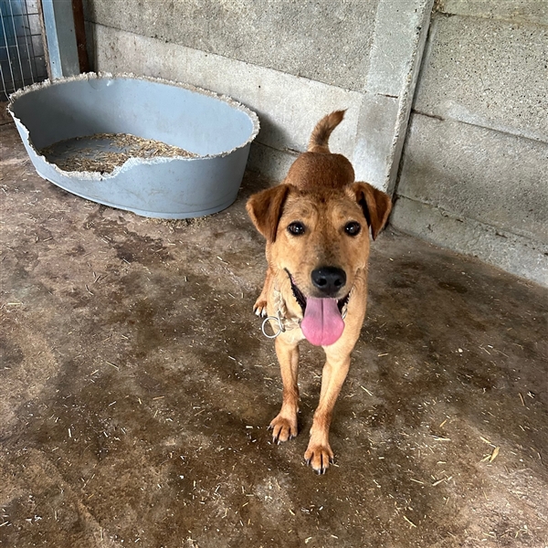 Das ist Nandi. Nandi ist ein ca. 3 Jahre alter Rüde und lebt in einem Tierheim in Ungarn. Der süße Schatz zeigt er sich dort super lieb, freundlich und zurückhaltend.