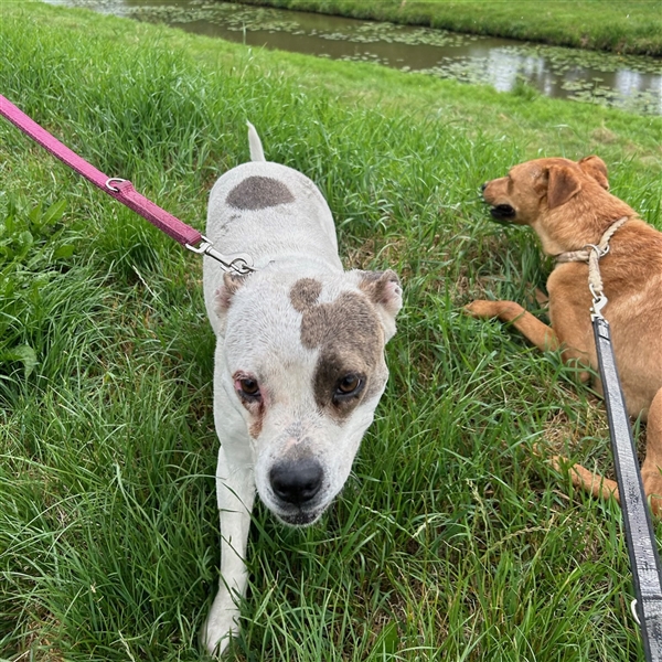 Da er nur seinen Zwinger kennt, sind Reize im Freien, wie Autos oder sonstige Geräusche für ihn auch herausfordernd.