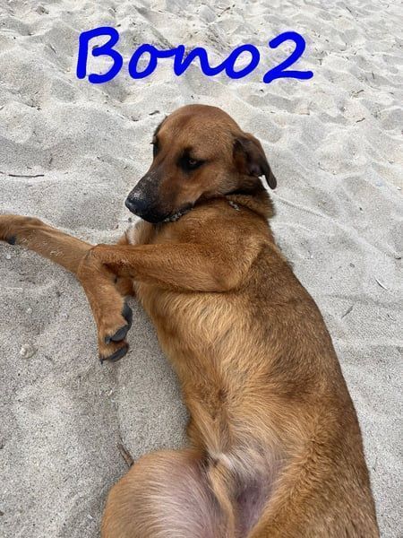 Bono2 ist einer von 8 Welpen aus einem Wurf. Zwei Hunde konnten bereits in ein schönes Zuhause ziehen. Vier der Geschwister leben in einem anderen Dorf. Bono2 und seine Bruder Buddy leben gemeinsam auf der Straße, da es keinen Platz im Tierheim gibt. Buddy hatte Glück und wurde jetzt adoptiert. Bono2 und seine Geschwister sind tolle, relaxte Hunde, die sich auch mit Kinder gut verstehn. Sie sind sehr gut sozialisiert mit anderen Hunden, wahrscheinlich auch Katzen, aber das müsste noch getestet werden. Bono2 ist sehr menschenbezogen und wünscht sich sehnlichst eine Familie, die ihm ein warmes und liebevolles Körbchen schenkt. Er hat es so sehr verdient von der Straße zu kommen.