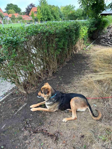 Für Nouka ist ein eingezäunter Garten sehr wichtig. Sie liebt es, draußen zu liegen, egal bei was für einem Wetter. Nouka kann leider nur noch zwei Monate (bis ca. Juni 2026) in der Familie bleiben.