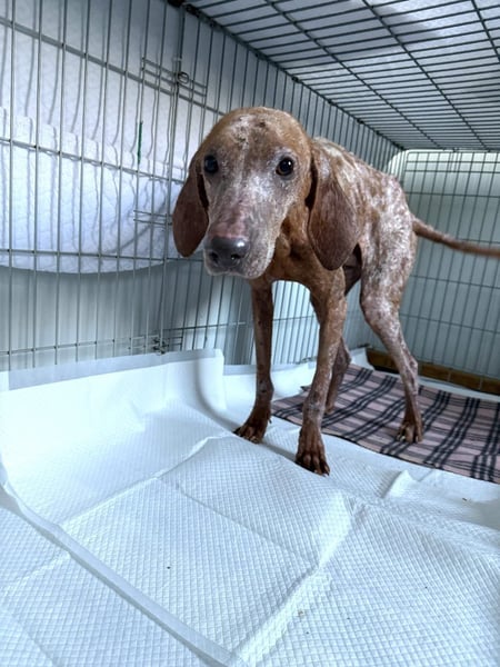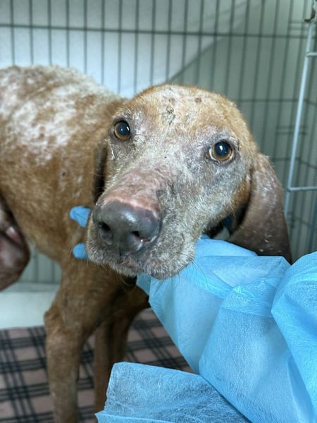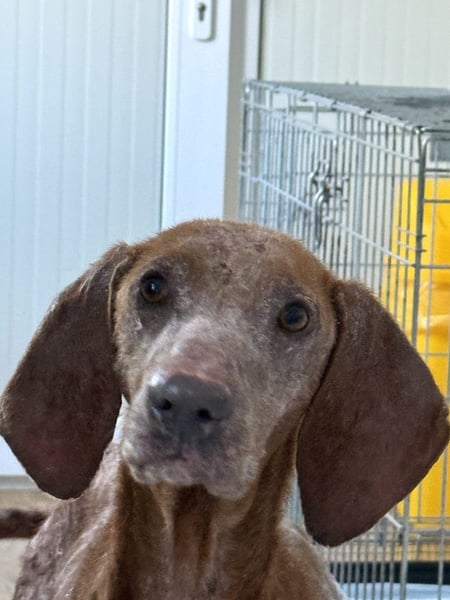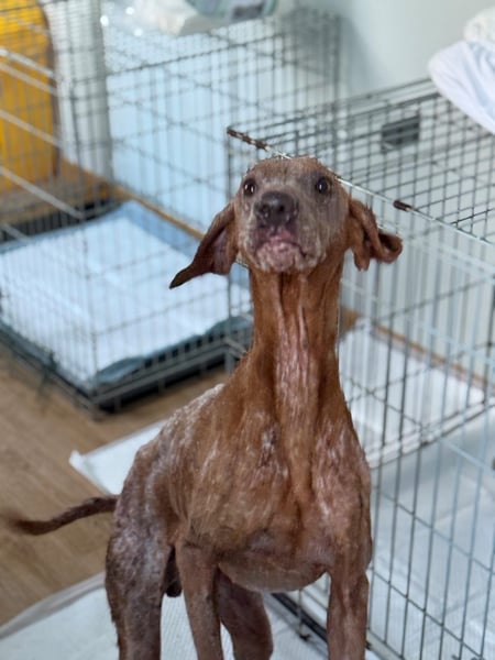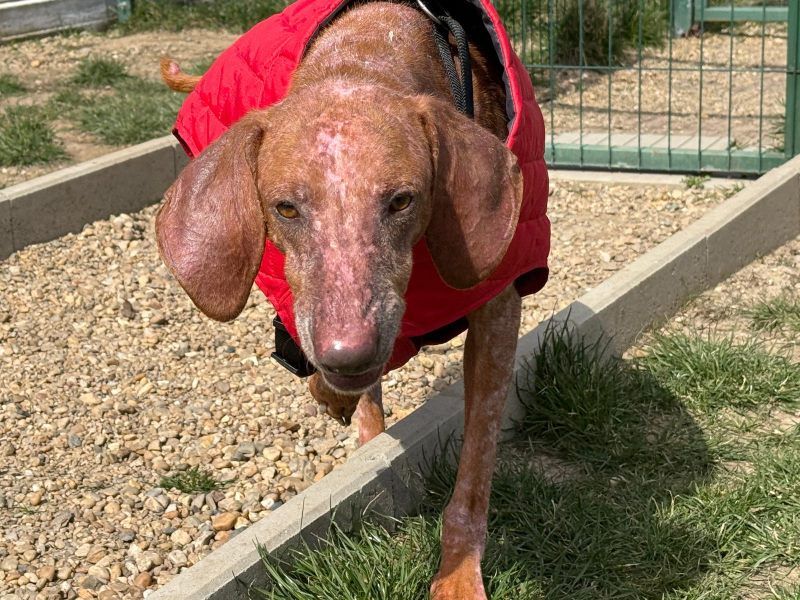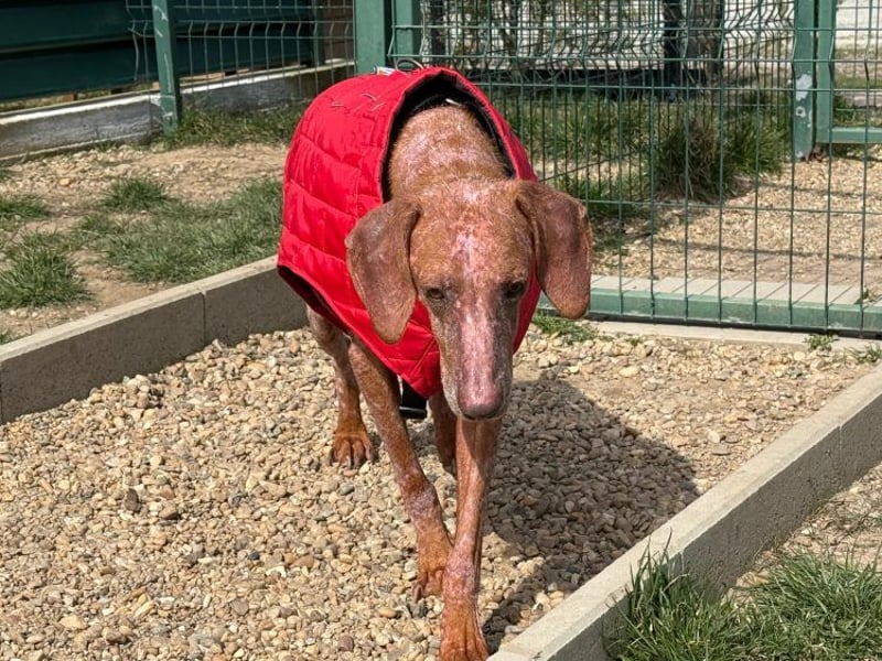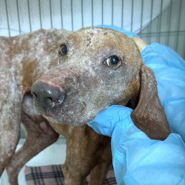 Sein Blick ist wieder wach und freundlich, sein Körper erholt sich Schritt für Schritt. Die schlimmen Wunden heilen, seine Werte verbessern sich, und sein Fell beginnt zu wachsen.