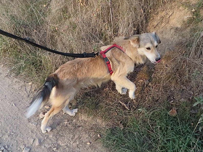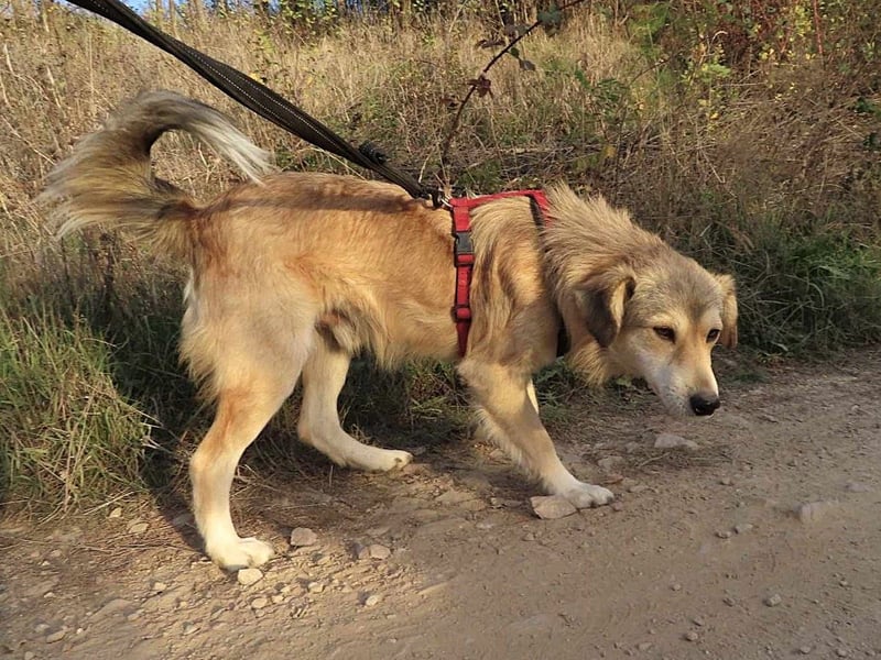 Da Diabolo immer mal wieder spazieren gehen darf, hat er bereits erste Erfahrungen mit Geschirr und Leine gemacht und toleriert beides gut.