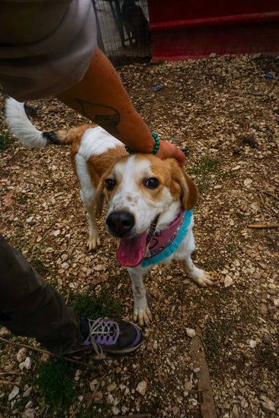 Seit ein paar Wochen sitzt Lucy im Zwinger des öffentlichen Shelters in Arta und versteht die Welt nicht mehr. Überall Lärm, Stress, bellende Hunde und kein Platz, um zu rennen oder zu spielen. Für ein junges Hundemädchen wie sie ist das kein Ort zum Aufwachsen.