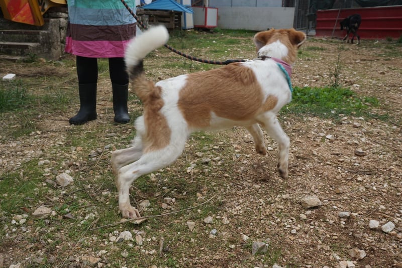 Lucy hat so viel Energie und Lebensfreude in sich, dass sie gar nicht weiß, wohin damit. Im Zwinger springt sie auf und ab, sobald jemand vorbeigeht; einfach nur, um gesehen zu werden. Wenn man dann ihren Zwinger betritt, gibt es für sie kein Halten mehr: Sie freut sich, als würde ihr Herz überlaufen.