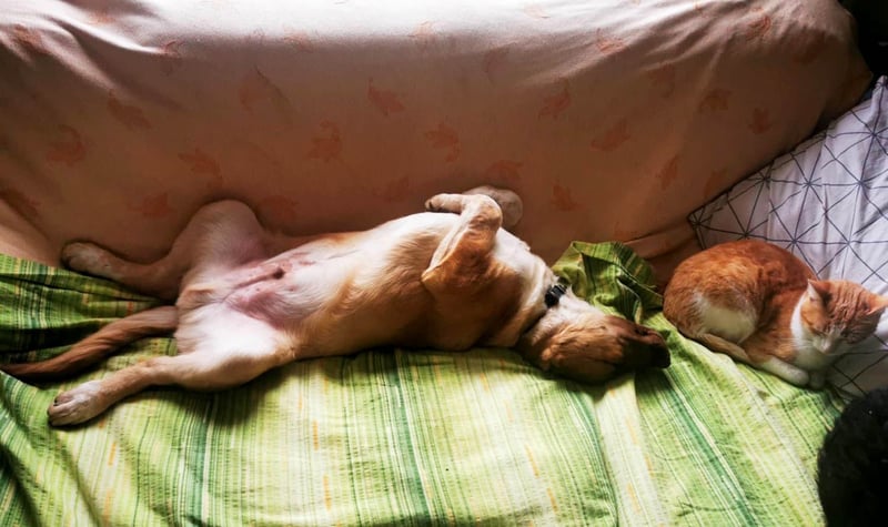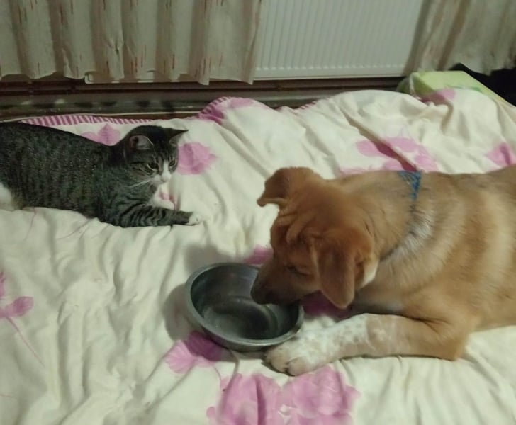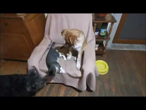 Mit anderen Hunden versteht sich Toby sehr gut. Sowohl drinnen als auch draußen ist er mit allen Hunden, egal ob Rüde oder Hündin, sehr verträglich. Er ist immer in Spiellaune und sucht den Kontakt zu diesen, hat aber auch gelernt, dass er die älteren Hunde respektieren muss. Er hat ein starkes Bedürfnis nach Kontakt zu anderen Hunden, und ein Spielpartner wäre sehr gut geeignet. Auch mit Katzen im Haus kommt Toby sehr gut zurecht. Er zeigt ihnen gegenüber Neugier und spielt gerne mit denen die es zulassen.