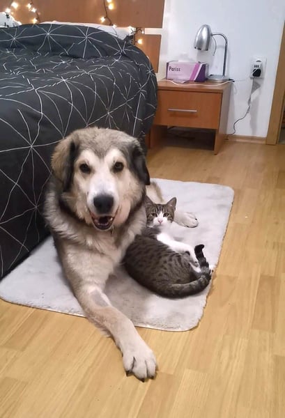 Die Zusammenführung mit Katzen verläuft problemlos. Fistic lebt aktuell mit zwei Katzen zusammen, und die Koexistenz funktioniert sehr gut. Er liebt “seine Katzen” und diese lieben ihn auch sehr.