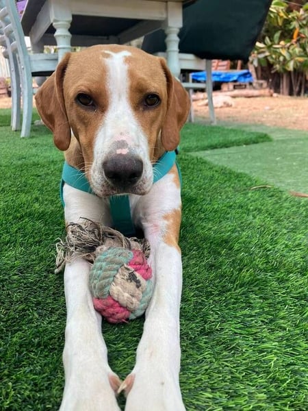 Sandy (*ca. 11/2023) ist eine junge Gotland Hound-Mix-Hündin mit einem offenen, fröhlichen Wesen – und einer traurigen Vergangenheit. Anfang November 2024 kam sie in unser spanisches Partnertierheim Triple A Marbella, nachdem ihre früheren Besitzer sie einfach in einer Hundetagesstätte zurückgelassen und nie wieder abgeholt haben.