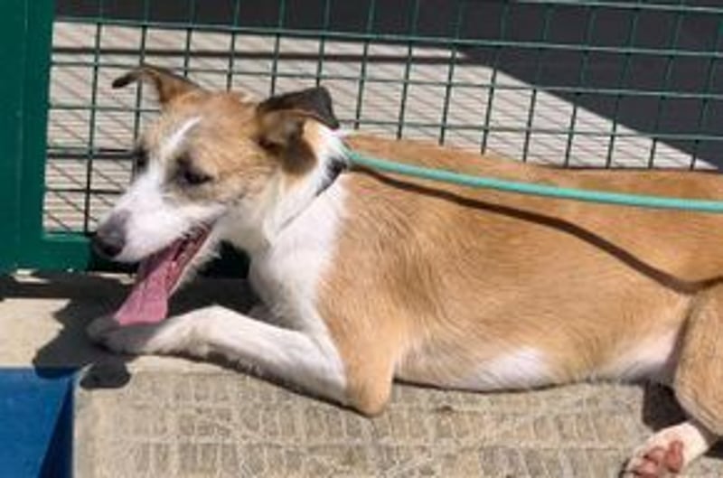 Pinha wurde dem Tierheim in Portugal gemeldet, weil sie in der Nähe eines kleinen Ladens aufgetaucht war und dort etwas verloren wirkte. Da Pinha sehr scheu und ängstlich war, konnte sie nicht einfach so eingefangen werden, es musste eine große Hundefalle aufgestellt werden. Damit war es kein Problem, die größere Hündin ins Tierheim zu bekommen. Schnell war klar, dass Pinha eine sehr gutmütige Hündin ist, die in keiner Situation zu Aggressionen neigt, im Gegenteil, Pinha versucht allen Konflikten aus dem Weg zu gehen. So durfte sie auch bald mit anderen Hunden zusammen in einem großen Zwinger leben. Als wir Pinha zum Fotografieren zusammen mit ihrer Zwingergenossin Fati geholt haben, war sie zunächst sehr unsicher. Sie neigt dann dazu, sich auf den Boden zu legen, lässt sich aber anfassen und man merkt, eigentlich mag sie den Kontakt zu Menschen. Der Tierpflegerin gegenüber ist Pinha bereits aufgeschlossener und hat ihr Misstrauen weitestgehend überwunden. Natürlich wird noch viel Geduld nötig sein, bis Pinha sich entspannt zwischen (auch fremden) Menschen bewegen kann. Wir haben sehr gute Erfahrungen damit gemacht, auch solchen Hunden eine Chance zu geben. Gerne beraten wir Sie in dem Punkt. Dem Kind gegenüber, das uns beim Fotografieren begleitet hat, war Pinha absolut friedlich und freundlich. Pinha kann inzwischen auch mit den freiwilligen Helfern des Tierheims Spaziergänge unternehmen, was ihr anfangs noch schwer gefallen ist. So können bei Pinha durchaus viele kleine Fortschritte beobachtet werden, die uns natürlich freuen. Pinha ist eine sanftmütige und sehr verträgliche Hündin, die in einem Zuhause mit viel Zuwendung sicherlich schnell „aufblühen“ würde.