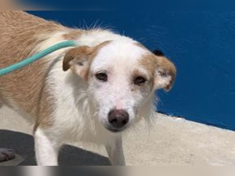 Fati lebte in der Nähe eines kleinen Dorfes in Portugal zusammen mit einer anderen Hündin und immer wieder auch Welpen. Die kleine Hundegruppe wurde an dem Ort lange Zeit toleriert und es wurden Futterplätze eingerichtet. Im Frühjahr dieses Jahres waren wieder fünf neue Welpen da und die Gemeinde wurde informiert. Die Welpen konnten einfach eingefangen werden und sind zu uns auf den Hof gezogen (siehe Olli und Geschwister). Fati und die Mama der Welpen wurden später in einer großen Falle eingefangen. Beide Hündinnen waren sehr ängstlich und unerfahren und kamen ins Tierheim. Fati hat sich dort schnell angepasst und im Laufe der Zeit ihre Vorbehalte gegen Menschen schon größtenteils abbauen können. Sie hat sich zu einer liebenswerten Hündin entwickelt, die sehr freundlich ist und freudig auf alle reagiert, die sie kennt. So geht sie inzwischen auch sehr gerne mit spazieren und genießt den Kontakt zu den freiwilligen Helfern. Fati hat nie Aggressionen gezeigt, auch als sie große Angst hatte. Uns kannte sie gar nicht, als wir sie zum Fotografieren aus ihrem Zwinger geholt haben. Deshalb war sie bei unserem Fototermin ein wenig unsicher an der ein oder anderen Stelle. Dem kleinen Mädchen, das bei uns war, hat sie sich entspannt genähert. Fati wirkt unkompliziert und geduldig, sie ist eine friedliebende Hündin, die im Tierheim mit anderen Hunden in einem Zwinger lebt. Es wäre schön, wenn sie diesen bald für immer hinter sich lassen könnte.