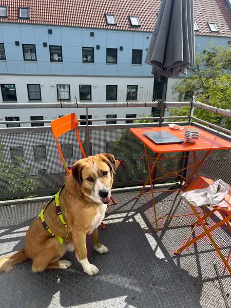 Im Haus ist er ruhig, ausgeglichen und äußerst angenehm im Umgang. Er ist stubenrein, sehr folgsam und ein absoluter Vorzeigeschüler. Schon nach wenigen Tagen fühlte er sich in seinem neuen Umfeld pudelwohl, genießt die Ruhe, holt Schlaf nach und zeigt sich im Alltag sehr anpassungsfähig. Besonders gerne liegt er auf dem Balkon, wo er aufmerksam das Geschehen beobachtet und dabei sichtbar entspannt.