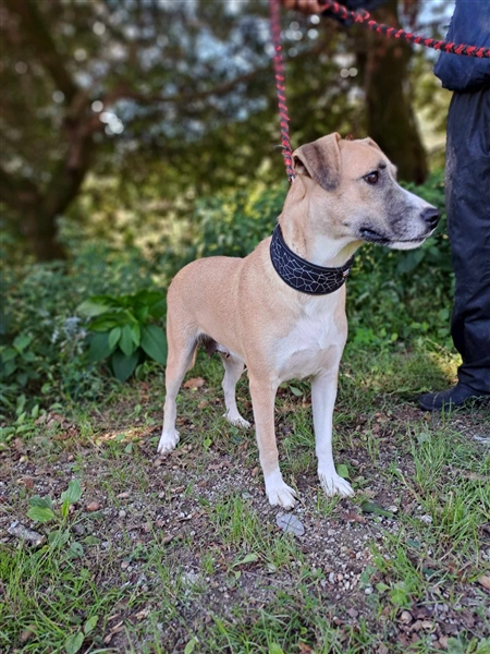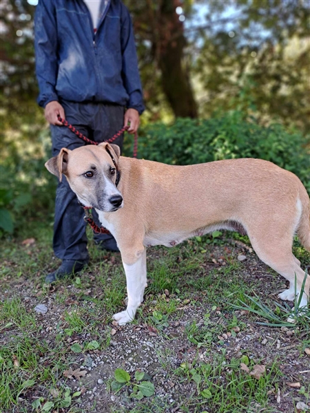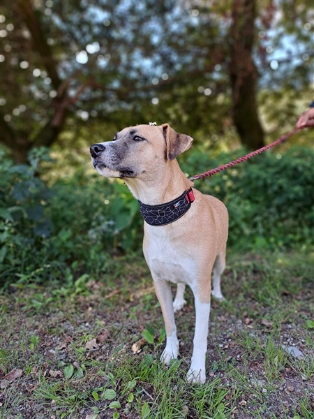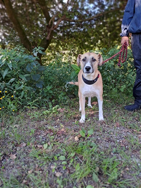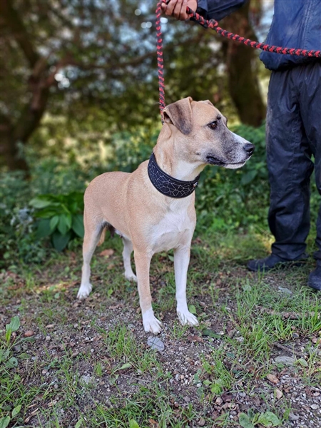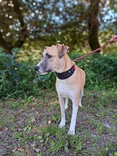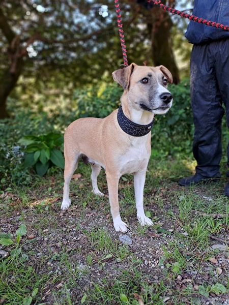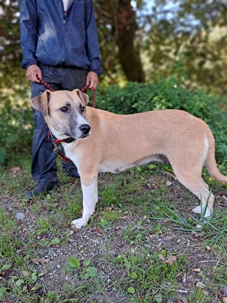 Maggy ist eine liebe und soziale Hündin mit einer Schulterhöhe von 55 cm. Sie hat ein sanftes Wesen, ist freundlich zu Menschen und versteht sich wunderbar mit anderen Hunden. Ihr Herz ist voller Liebe, und sie ist bereit, es ihrem neuen Zuhause zu schenken.