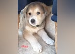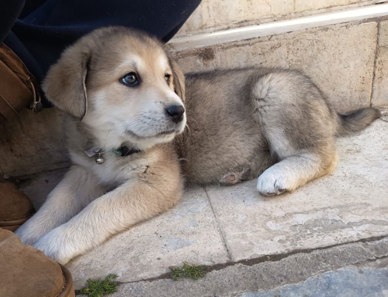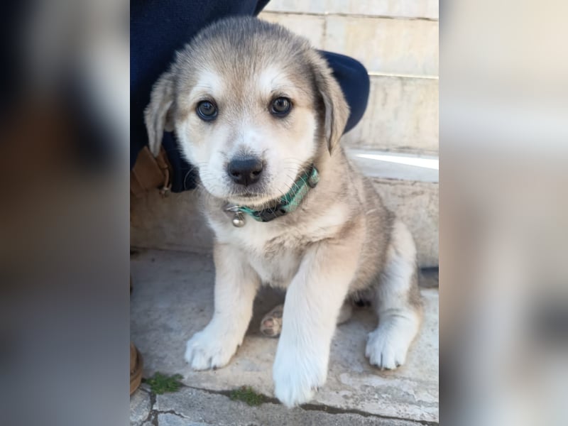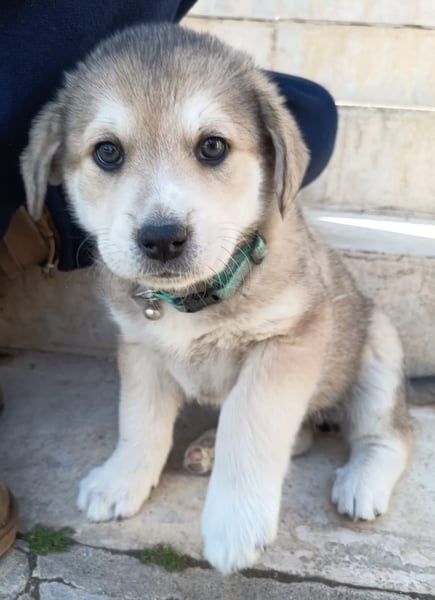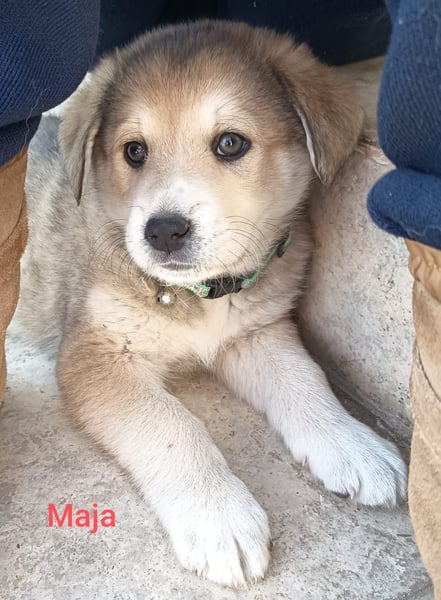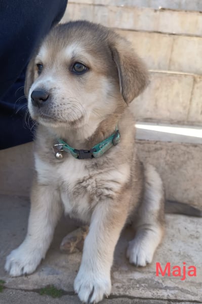 Maya wird schon eine Größe wie ihre Mutter , um die 60 cm und ca 30 kg erreichen. Sie wartet in Griechenland auf ihr Ticket ins Glück und kann mit 4 Monaten reisen.