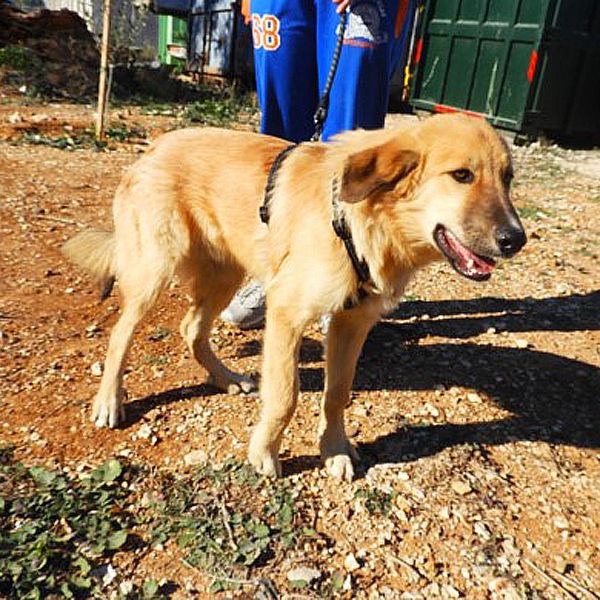 Kenny streunte am Strand von Kalorgia herum, ein Ort, wo oft Hunde ausgesetzt werden. Kenny ist auf seiner Suche nach Futter deutschen Touristen aufgefallen, er schien eine Verletzung am Bein zu haben. So wurde Maria informiert, die sich zusammen mit ihren Kollegen auf den Weg nach Kalorgia machte. Sie fanden den jungen Rüde am Strand, Kenny freute sich riesig über soviel Aufmerksamkeit und stieg bereitwillig ins Auto seiner Retter ein. Die vielen Kilometer nach Patras hat er völlig erschöpft durchgeschlafen. Er wurde erst in eine Tierklinik gebracht, wo er geimpft, gechippt und behandelt wurde. Auch einen Mittelmeertest hat er bekommen. Jetzt lebt er in einer Pflegestelle zusammen mit unserer Kiki.