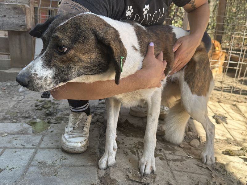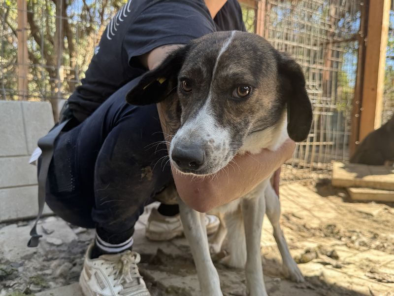 Die hübsche, weiß-braun gefleckte Nora ist gerade einmal 1 bis 2 Jahre jung und doch hat ihr junges Leben schon Spuren hinterlassen. Als wir sie im Tierheim Bucov/Rumänien entdeckten, stand sie still und verunsichert in einer Ecke – zurückgezogen, vorsichtig, fast wie unsichtbar. Wir konnten sie dort behutsam sichern. Als wir sie das erste Mal streichelten, zitterte sie aber nach einigen Augenblicken beruhigte sie sich – ein zarter Anfang, ein erster, kleiner Schritt in Richtung Vertrauen. Man spürte sofort: In ihr steckt keine Aggression, sondern nur Unsicherheit. Vielleicht hat sie nie gelernt, dass Menschen auch sanft sein können. Ihr Körper zeigt, dass sie bereits Welpen hatte – viel zu früh, viel zu jung. Nun ist sie selbst noch kaum erwachsen und braucht endlich jemanden, der sich um sie kümmert. Der ihr Sicherheit gibt, statt Verantwortung aufzuerlegen. Der ihr zeigt, dass Liebe nichts mit Angst zu tun hat. Damit Nora nicht noch scheuer wird, sollte sie das Tierheim möglichst bald verlassen dürfen. Denn jeder weitere Tag in dieser lauten, überfüllten Umgebung lässt die zarte Pflanze in ihr ein Stück mehr verkümmern, anstatt aufzublühen. Nora braucht einen ruhigen Ort, Menschen mit Geduld und Herz, die verstehen, dass Vertrauen nicht eingefordert, sondern geschenkt wird – in kleinen, stillen Momenten. Wer ihr diese Chance gibt, wird miterleben dürfen, wie eine ängstliche Hündin langsam aufblüht. Schritt für Schritt, Tag für Tag – bis aus Angst Zuversicht wird, und aus Zurückhaltung leises Glück.