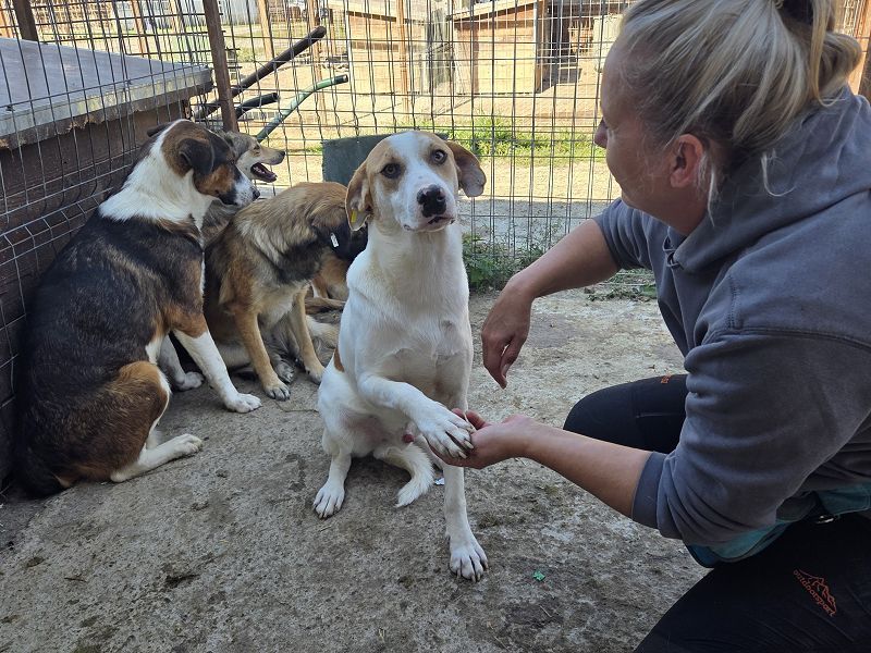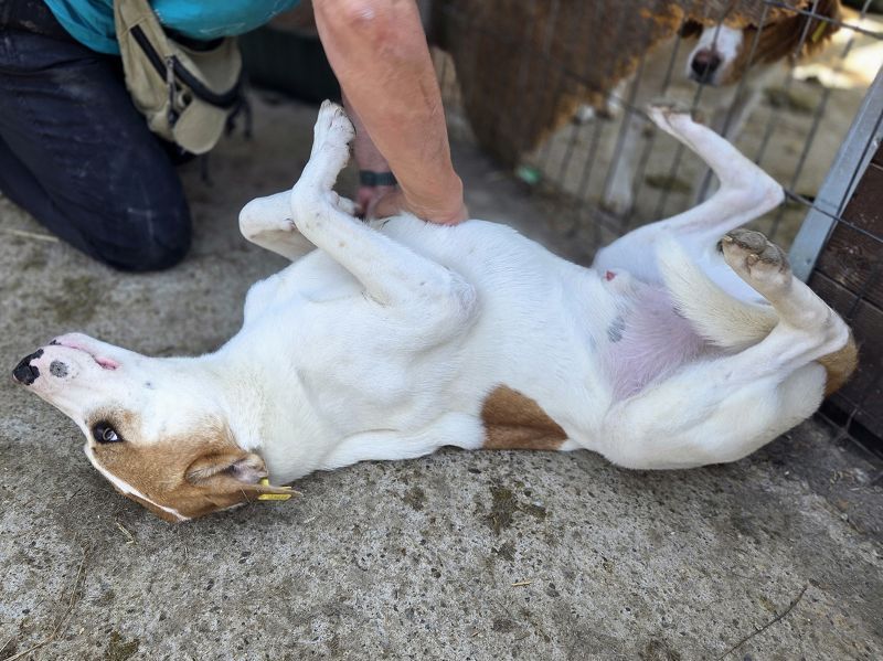 Dieser hübsche junge Rüde lebt im Zwinger in einem gemischten Rudel. Er ist zu allen Hunden freundlich und auch uns Menschen findet er toll. Um unsere Aufmerksamkeit zu bekommen, gab er Pfötchen und ließ sich gerne mit Leckerchen bestechen. Nachdem wir einen sehr dominanten Rüden in diesem Zwinger etwas abgelenkt haben, legte sich Marian auf den Rücken und ließ sich den Bauch kraulen. Er genoss unsere Zuwendung sehr und wollt uns gar nicht mehr gehen lassen. Die Sicherheit, die er durch uns erfuhr, genoss er sichtlich. Ein freundlicher Rüde mit einer sportlichen Größe. Marian wird sicher jedem Hundefreund ein toller Begleiter werden. Und schnell wird ihn die ganze Familie in sein Herz schließen.
