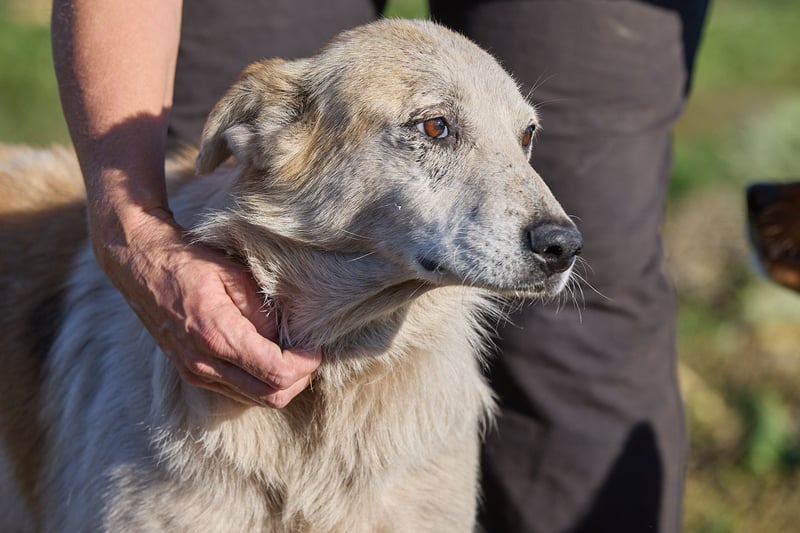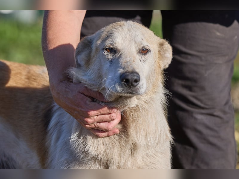 Er ist ein älterer, weiser Hund, der durch seine ruhige und ausgeglichene Art sofort berührt.