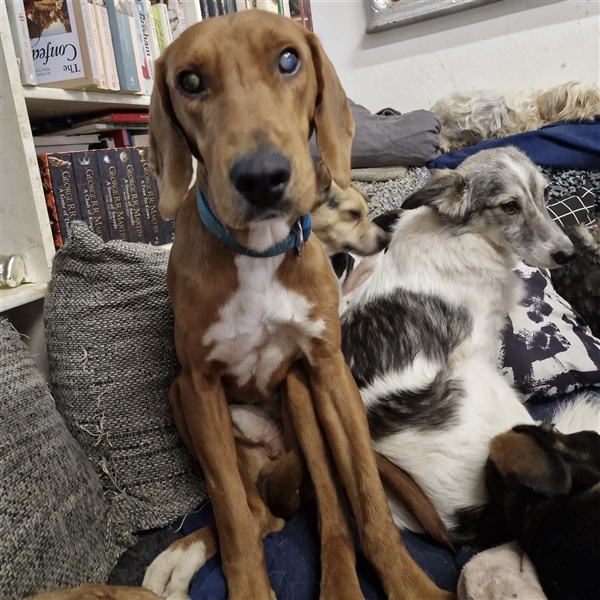 Ili ist blind und wurde aufgrund seines Handicaps entsorgt. Er wurde sehr abgemagert aufgefunden und wird derzeit bei einer Tierschützerin in Kroatien aufgepäppelt! Er nimmt langsam wieder an Gewicht zu und hat sich super in das Rudel eingefunden.