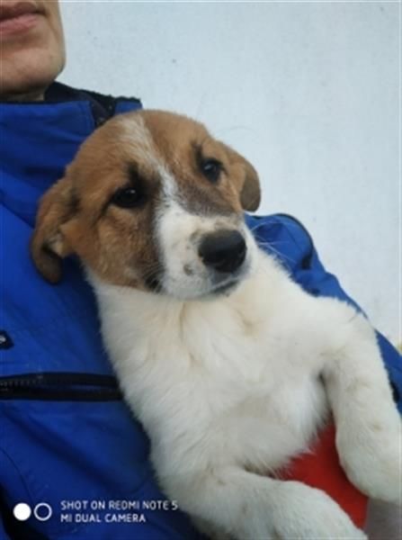 Die braunweiße Emma, etwa im September 2019 geboren, wurde zusammen mit ihrer Schwester Elsa gefunden… sie waren erst wenige Monate alt… mitten im Winter auf einem Weg zu einem Kloster, links und rechts nur Felder – das wäre schon bald ihr Tod gewesen.