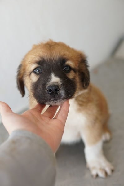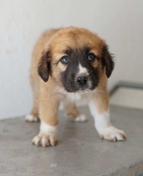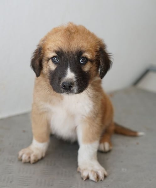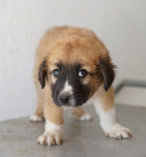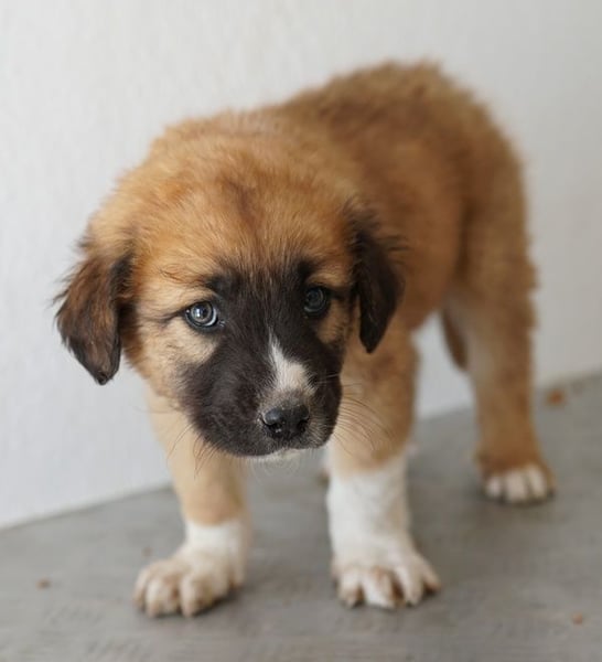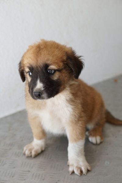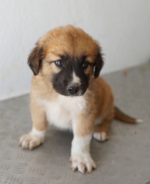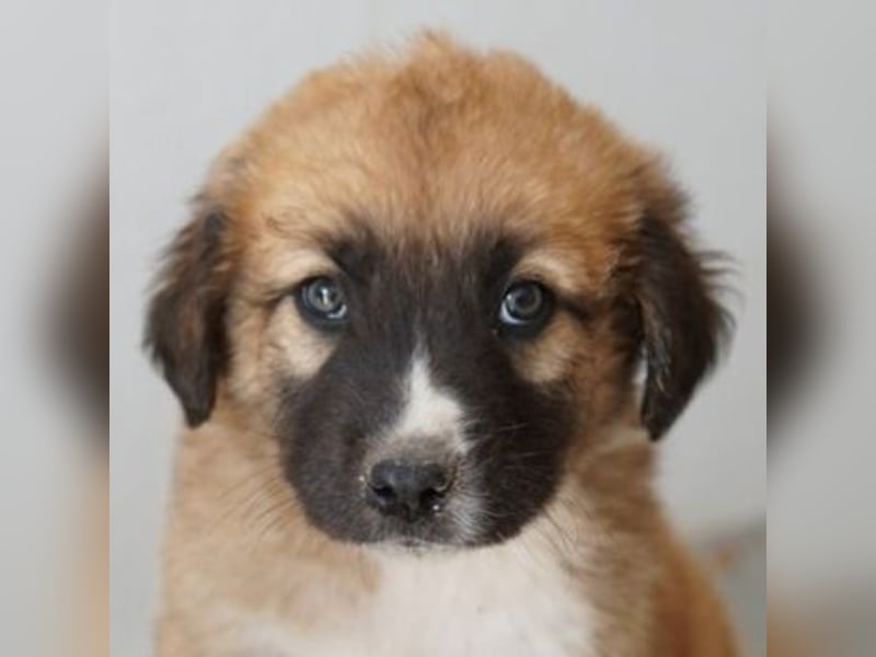 Scotch ist ein noch kleines Kerlchen, das eine hübsche Fellzeichnung in Hellbraun und Weiß trägt. Besonders der weiße Fleck auf der dunklen Schnauze ist ein echter Hingucker. Ausgewachsen wird Scotch einmal circa mittelgroß werden. Ganz genau lässt sich das nie sagen, da wir den Vater nicht kennen.