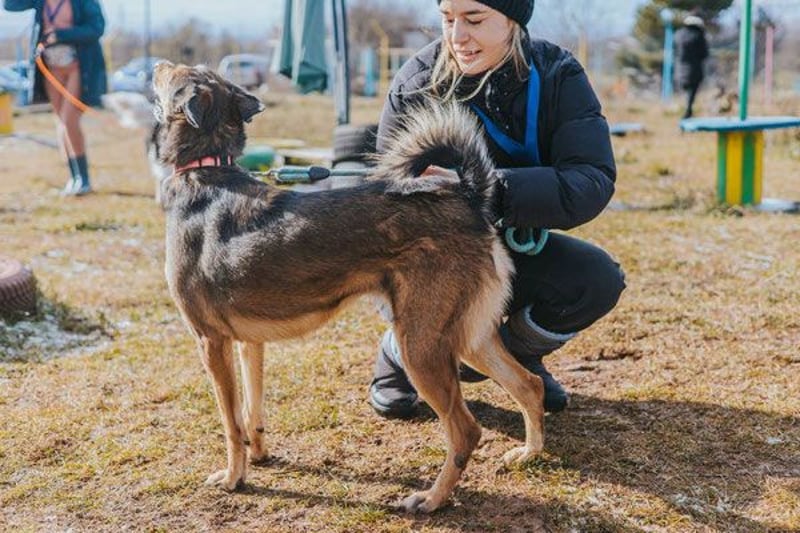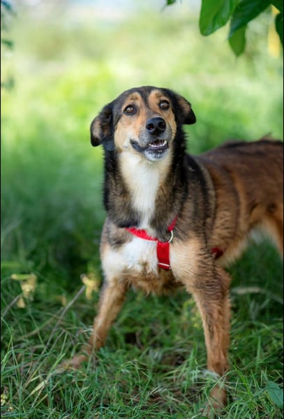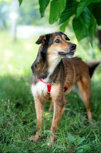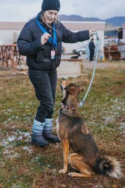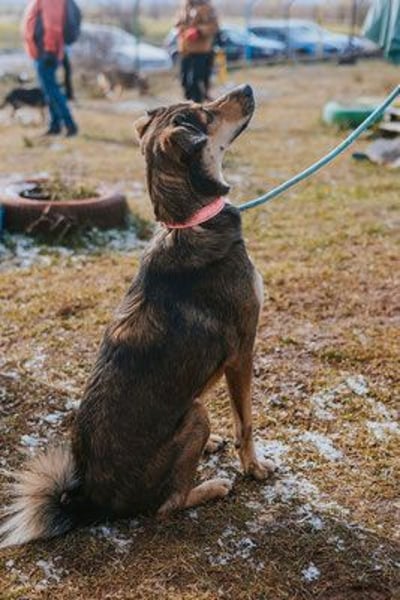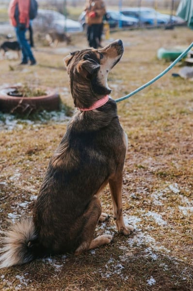 Borisa ist eine junge Hündin, die sich für einfach alles begeistern kann – selbst eine Ameise am Wegesrand zieht sofort ihre Aufmerksamkeit auf sich. Im Zwinger begrüßt sie uns mit freudigen Sprüngen und wedelndem Schwanz. Das Anlegen des Halsbandes dauert etwas länger, da ihre Euphorie kaum zu bremsen ist – doch mit etwas Geduld klappt es schließlich.