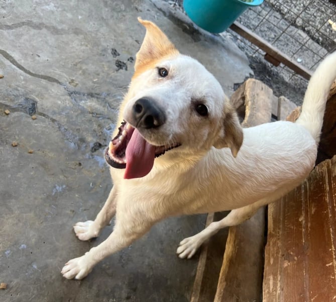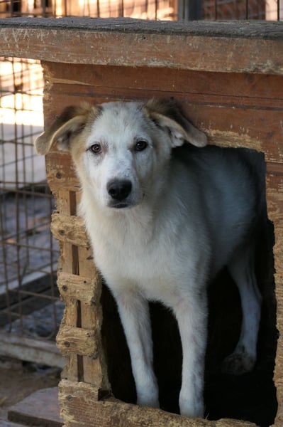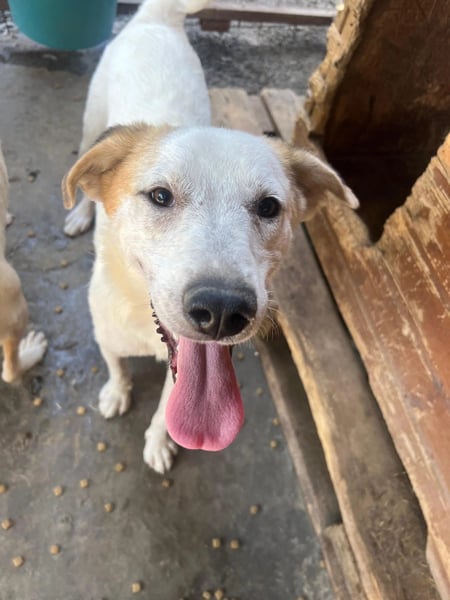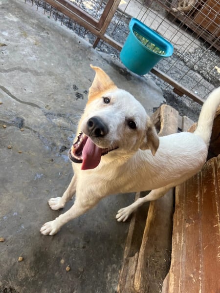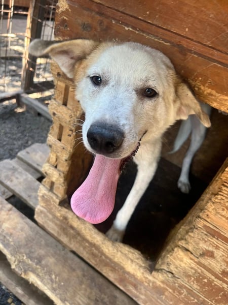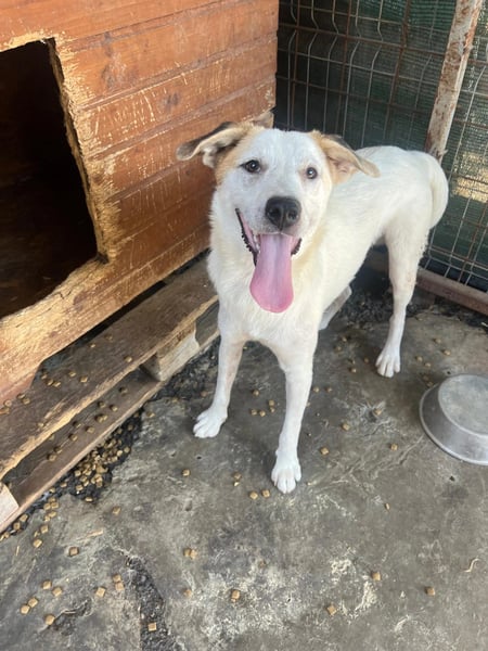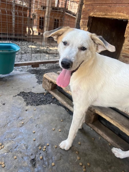Kuchen wurde zusammen mit vielen weiteren Hunden im Januar 2025 aus dem städtischen Tierheim in Giurgiu gerettet. Die Bedingungen dort sind für die Hunde äußerst schwierig: Viel zu viele Tiere sind in den Zwingern eingesperrt, es gibt zu wenig Futter, was häufig zu Beißereien führt. Es ist kalt, sehr laut, und es gibt keine Möglichkeiten, sich zurückzuziehen. Die Hunde stehen unter dauerhaftem Stress. Besonders Welpen sowie alte, schwache oder kranke Tiere haben kaum eine Chance, dort lebend herauszukommen. Nun sind die Hunde im Ari Paws in Sicherheit, werden erst einmal aufgepäppelt und bekommen volle Näpfe.