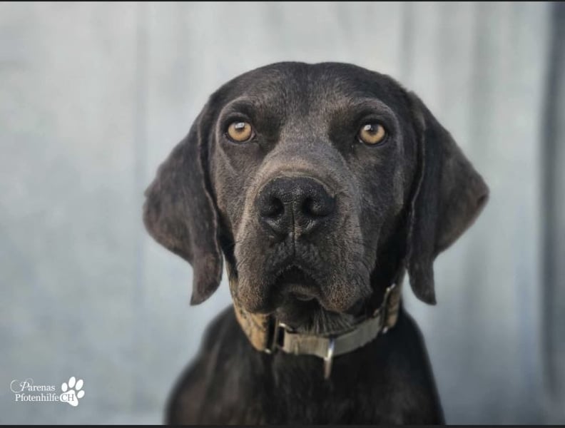 Yogi ist ein hübscher Mischlingsrüde, in dem deutliche Anteile vom Weimaraner stecken – sowohl vom Aussehen als auch von seiner Art. Yogi ist sehr anhänglich, verschmust und will dem Menschen gefallen. Der intelligente und neugierige junge Mann braucht aktive Menschen, die mit seiner Energie prima umgehen und diese in sinnvolle Bahnen lenken können. Wandern, Hundesport und Kopfarbeit wären für ihn ideal.