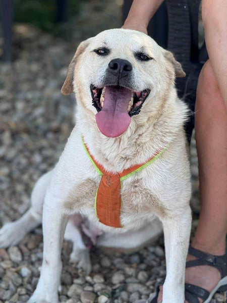 Er ist super freundlich, offen, verschmust und dabei überhaupt nicht ängstlich. Menschen begegnet er mit einem Lächeln im Gesicht und einem Schwanz, der vor Freude nicht stillstehen kann.