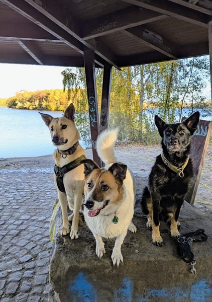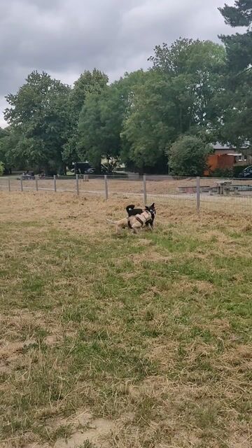 Henry läuft regelmäßig im kontrollierten Freilauf und auch in der Hundegruppe gut und gerne mit, reagiert allerdings ohne das Handling einer versierten Person auf schnelle Reize wie Fahrradfahrer oder fremde Hunde, weshalb ein achtsamer Umgang und Fokus auf Henry wichtig ist.