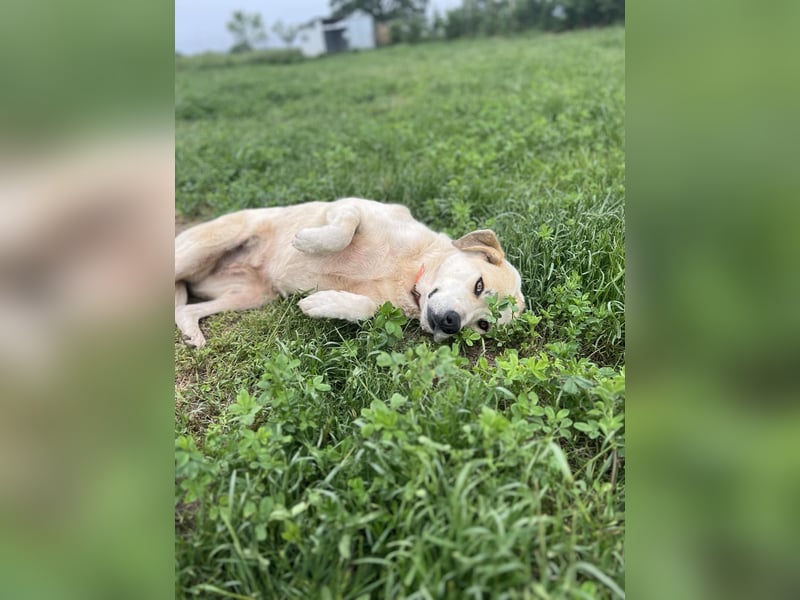 June begleitet uns im Shelter bereits seit ihrer Welpenzeit. Von Anfang an hat sie ihr ganz besonderes Wesen gezeigt: Sie ist eine unglaublich sanfte, liebevolle und ausgeglichene Hündin, die jedem Lebewesen mit Freundlichkeit begegnet. Besucher*innen erzählen immer wieder, wie schnell June ihre Herzen erobert – sei es durch ihren vorsichtigen Schwanzwedler, ihre ruhige Ausstrahlung oder ihren Wunsch, einfach dazuzugehören.