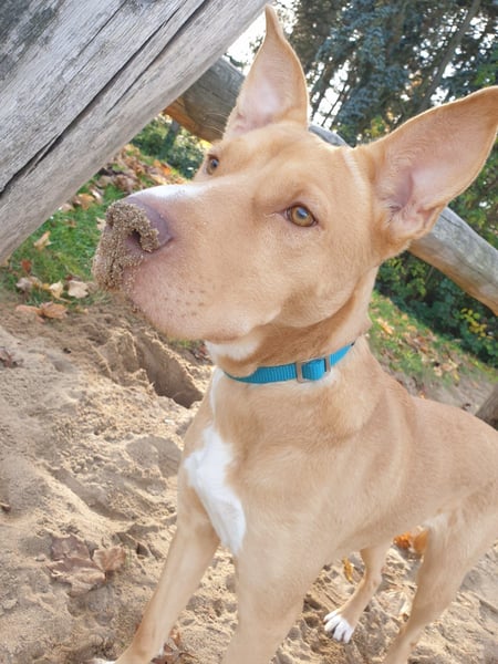 Elsa ist eine junge Hündin mit freundlichem Wesen, die gerne kuschelt, spielt und Leckereien mag. Sie ist verspielt, lustig und möchte hin und wieder ihren eigenen Kopf durchsetzen. In neuen Situationen zeigt sich Elsa teilweise unsicher und reagiert schreckhaft. Fremden Menschen begegnet sie zunächst bellend und braucht Zeit sowie klare Strukturen, um Vertrauen zu fassen. Im Auto fährt sie eher widerwillig mit, dafür kann sie gut alleine bleiben und läuft größtenteils gut an der Leine mit. Mit anderen Hunden ist Elsa gut verträglich, testet jedoch hin und wieder auch deren Grenzen. Auf der Hundewiese wird ausgiebig gespielt und getobt.