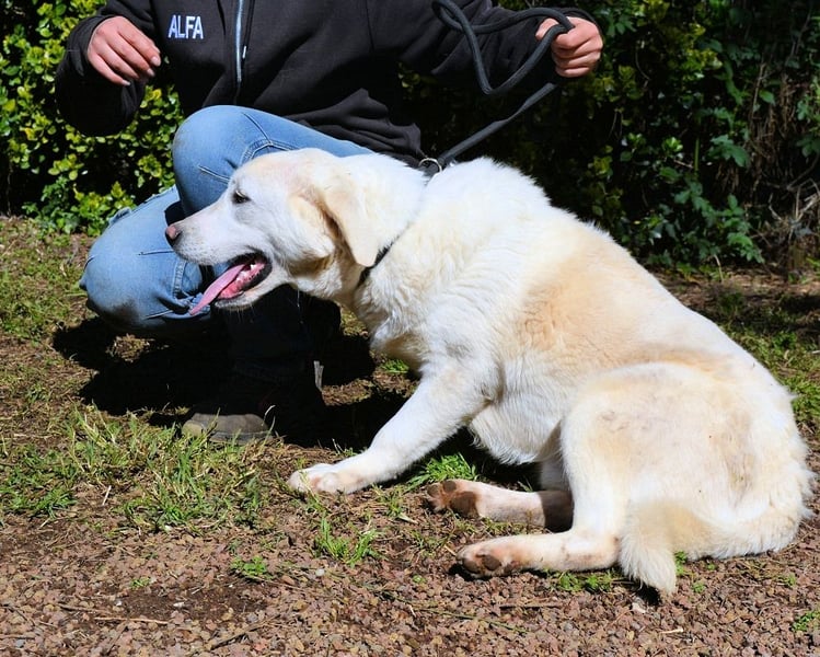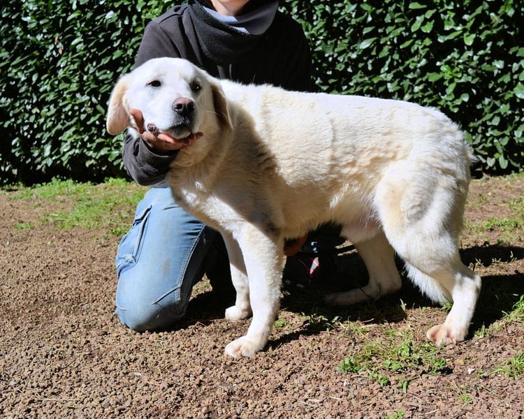 Er lebt aktuell in einer gemischten Box mit Rüden und Hündinnen, zeigt sich dort freundlich, gelassen und sozial. Neue Orte und unbekannte Situationen verunsichern ihn noch. Er wirkt verloren, schaut sich suchend um, als wüsste er nicht, was von ihm erwartet wird. Doch bekommt er die richtige Anregung, spürt er sanfte Ermutigung, beginnt er aufzublühen.
