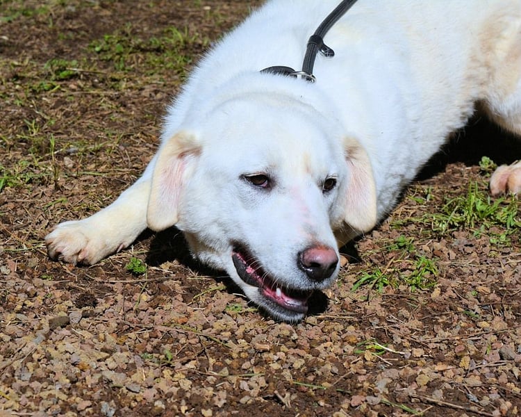 Leider leiden sowohl Shipley als auch alle seine Geschwister an Dermatitis. Vielleicht ist das eine Reaktion auf den Stress im Lager, vielleicht vertragen sie auch das miserable Futter dort nicht oder sind allergisch auf einen Stoff in ihrer Umgebung. Dermatitis ist eine stark juckende Hautkrankheit, die in der Regel gut behandelbar ist. Allerdings muss dazu erstmal etwas Ursachenforschung betrieben werden, am besten unter tiermedizinischer Aufsicht. Und diesen Aufwand, Sie ahnen es schon, betreiben die Lager in der Regel nicht. Es könnte ja etwas kosten…