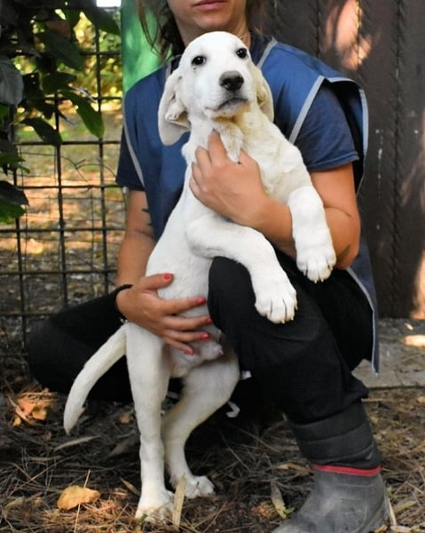 Innerhalb eines Monats (Mai / Juni 2024) haben wir über 40 Welpen in die Vermittlung bekommen. Einige der Hundekinder sind mit ihrer Mama eingesperrt, andere wurden ohne elterliche Begleitung aufgegriffen oder abgegeben und fristen nun ihre Kindheit wortwörtlich mutterseelenalleine in einer kleinen Betonzelle in einem der riesigen Hundelager. Scoutie und seine Geschwister Skitter, Scrubby, Shaydon, Shipley und, als einziges Mädchen, Shaniqua, sind sechs davon. Woher die fast durchgehend weiße Rasselbande kommt oder wer sie ins Hundegefängnis gebracht hat, wissen wir nicht. Laut ihren Papieren sind sie zusammen mit ihrer Mama am zweiten Tag ihres Lebens ins Lager verfrachtet worden. Die Welpen-Mama durften wir leider nicht kennenlernen, denn die Lagerleitung will verhindern, dass wir sie in die Vermittlung aufnehmen. Zumindest bis jetzt, aber wir geben auch hier nicht auf. Die sechs Hundekinder sind jedenfalls aktuell (Stand Juni 2024) schon fast drei Monate alt und können, nein müssen, ihr eigenes Zuhause finden, fernab aller Hundegefängnisse. Und zwar lieber heute als morgen. Denn jeder Tag im Lager ist für die Hunde ein verlorener Tag.