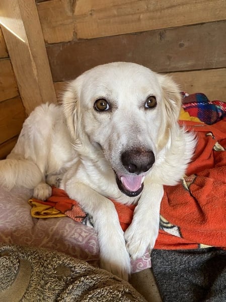 In der Zwischenzeit (Stand November 2025) geht es Idylle wieder gut, sie hat sich von unserer Freundin problemlos behandeln lassen, und so konnten ihre Wunden komplikationslos verheilen. Idylle ist eine wunderschöne, sehr sanfte Hündin, die sich mit Artgenossen gut versteht und durch deren Adern wahrscheinlich auch ein wenig Maremmanenblut fließt. (Bitte lesen Sie dazu auch unsere Info-Seite unter https://www.pro-canalba.eu/auslandstierschutz/herdenschutzhunde/). Aufgrund ihres bisherigen Lebens und ihrer Erfahrungen mit Menschen ist sie unbekannten Zweibeinern gegenüber noch immer etwas zurückhaltend. Luciana beschreibt es so: «Es scheint Idylle irgendwie unfassbar, dass es jemand tatsächlich gut mit ihr meint. Aber sie beweist tagtäglich, dass sie Vertrauen aufbauen und ihre Vergangenheit Schritt für Schritt hinter sich lassen kann.»
