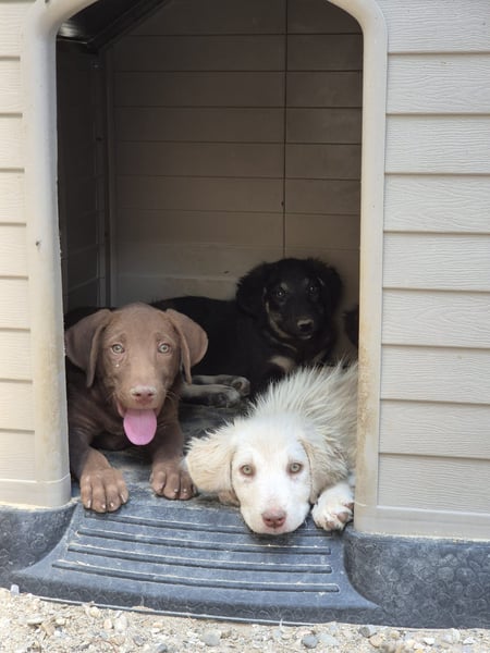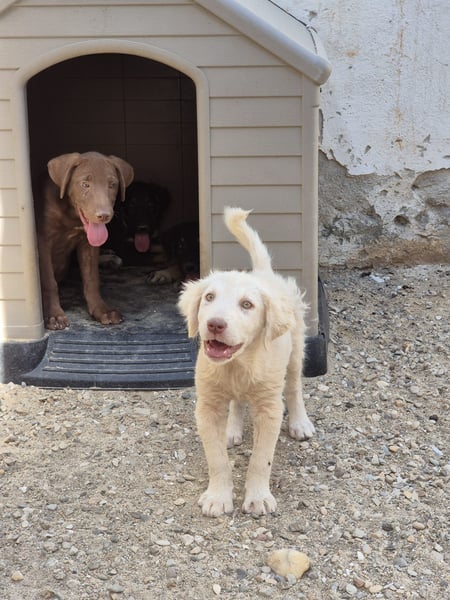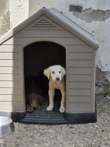Seitdem hat sich Dexi weiterentwickelt. Sie ist die zutraulichste aus der Welpengruppe. Noch ist die Kleine vorsichtig, aber wenn Futter ins Spiel kommt, verlässt sie ihre Hütte und zeigt sich neugierig. Mit ihren Geschwistern versteht sie sich prima – sie spielen gern zusammen und geben sich gegenseitig Sicherheit.