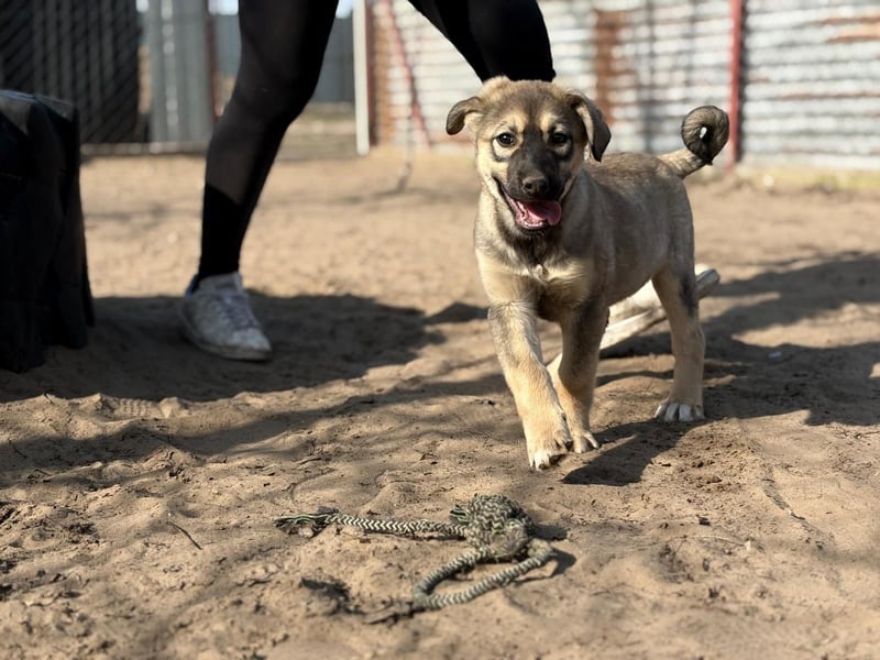 Nalani ist welpentypisch verspielt, neugierig und agil. Sie zeigt sich sehr menschenbezogen und geniesst Aufmerksamkeit. In neuen Situationen kann sie anfänglich noch etwas schüchtern oder vorsichtig reagieren, was in ihrem Alter völlig normal ist. Mit liebevoller Begleitung wird sie schnell Sicherheit gewinnen.