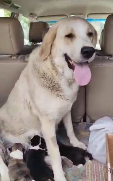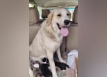 sich zusätzlich um ein fremdes Hundekind, das sie liebevoll aufgenommen hat.