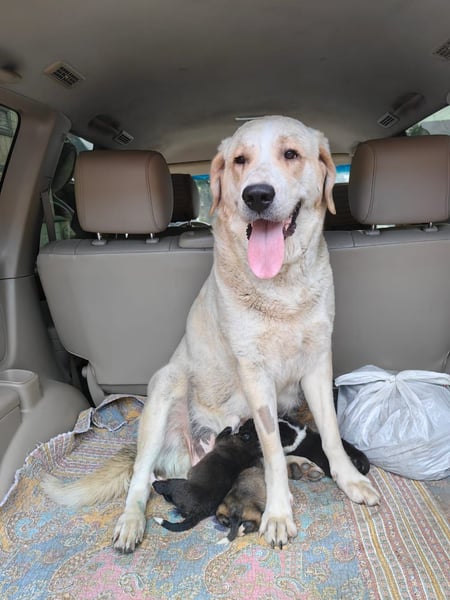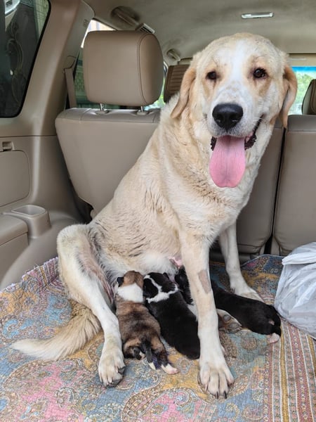krank auf der Straße gefunden – mitten im Überlebenskampf mit 12 neugeborenen Welpen.