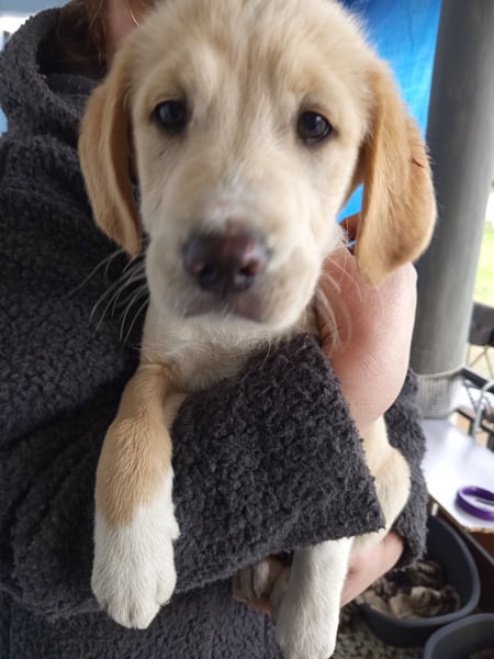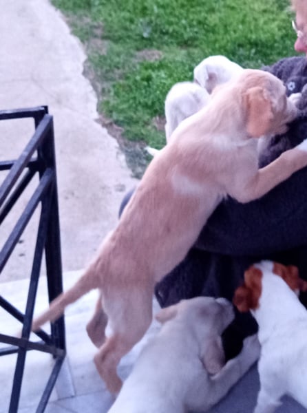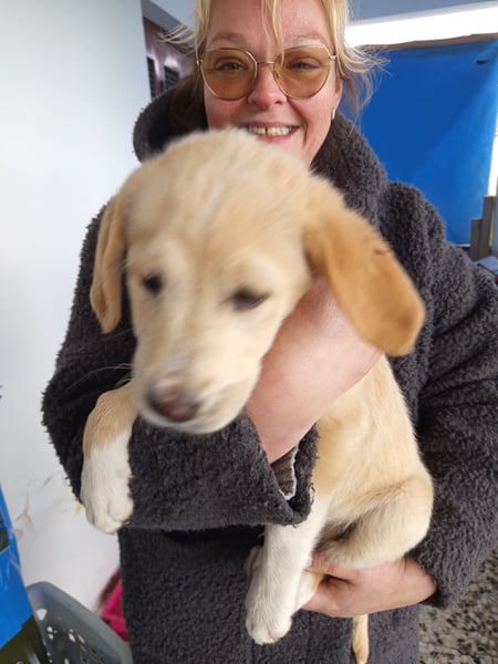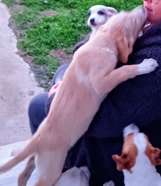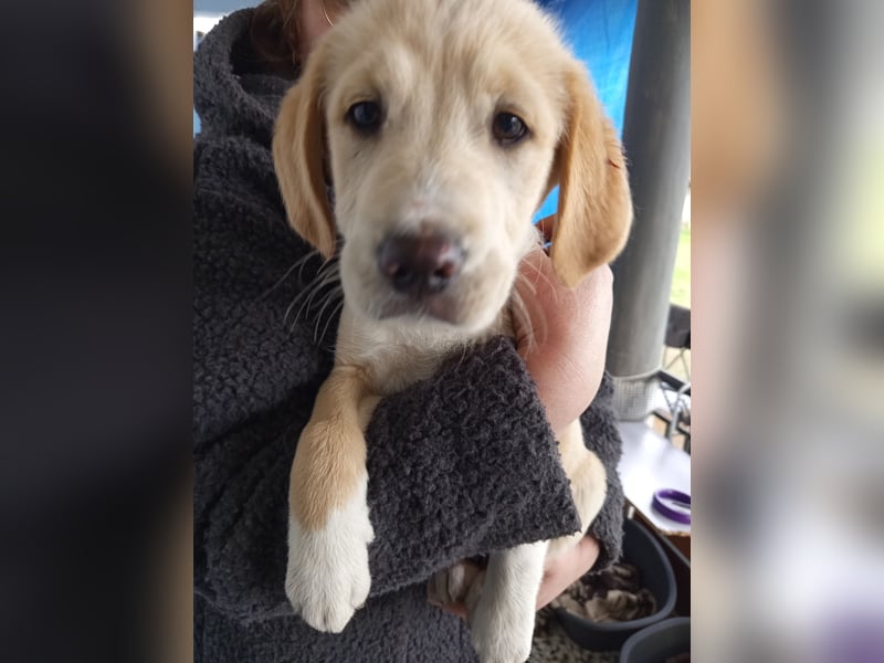 Trevor lebt aktuell in einem großen Rudel mit weiteren Welpen und anderen Hunden im Haus seiner Retterin.