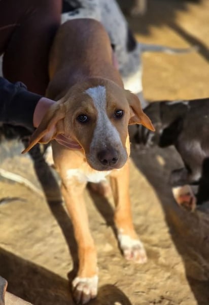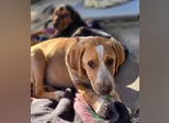 Moritz ist noch recht schüchtern, zeigt aber täglich kleine Fortschritte. Besonders im Zusammensein mit anderen Hunden fühlt er sich wohl, denn auch er tobt sehr gern mit seinen Artgenossen und genießt das gemeinsame Spiel. Seine verkürzte Rute schränkt ihn dabei in keiner Weise ein, er bewegt sich völlig normal und fröhlich.
