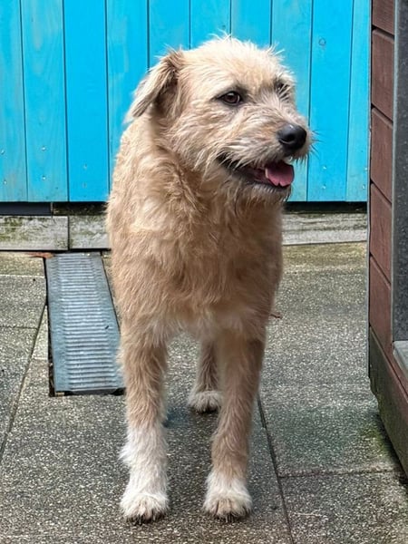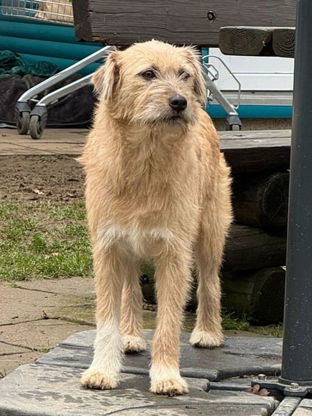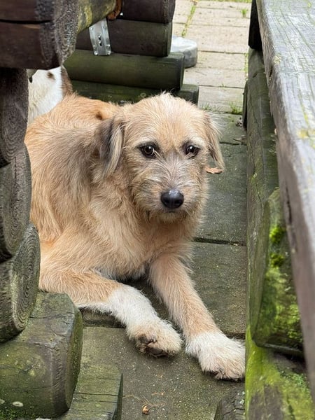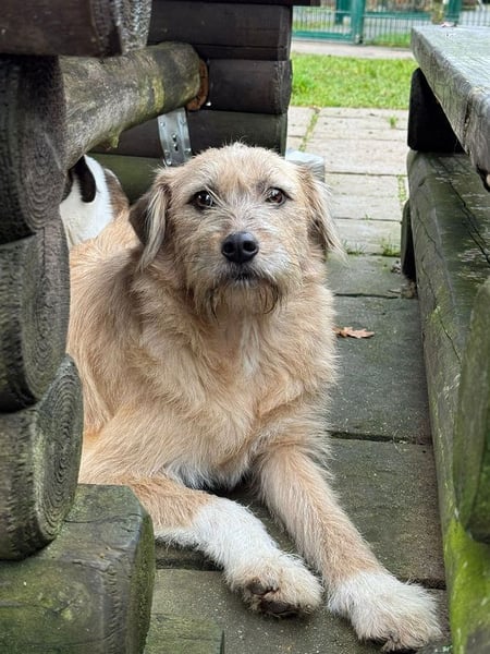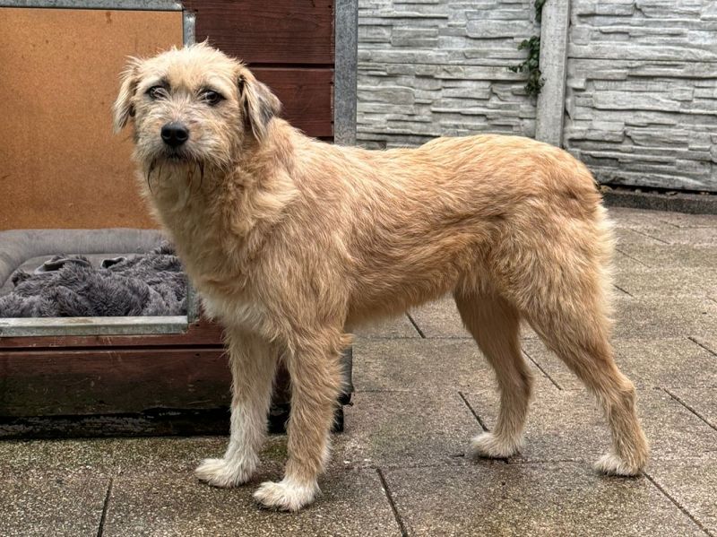 Conny kam Mitte Dezember zu uns nach Rösrath. Sie ist eine Hündin mit einem besonders weichen Kern – eine herzliche Seele, die aktuell noch unter viel innerem Stress steht. Dieser zeigt sich darin, dass sie unruhig umherläuft und viel hechelt. Gerne zieht sie sich unter eine Bank zurück, nicht aus Angst vor Menschen, sondern weil ihr das Zusammenleben mit vielen jungen, wilden Hunden manchmal einfach zu viel ist. Kommt ihre Bezugsperson, sucht Conny sofort Schutz bei ihr. Sie genießt Nähe sehr, lässt sich gerne streicheln und auch halten. All das zeigt: Conny möchte ankommen, sich fallen lassen und Sicherheit spüren. Als Einzelprinzessin oder zumindest in einem sehr ruhigen Umfeld wäre sie daher gut aufgehoben – alles, was sie braucht, ist ein starker, verlässlicher Mensch an ihrer Seite. An der Leine läuft Conny bereits gerne und gut, bevorzugt jedoch kleine Runden in immer derselben Umgebung, damit sie weiß, was auf sie zukommt. Draußen braucht sie noch Zeit, um sicherer zu werden. Fahrräder und Autos verunsichern sie momentan noch. Was ihr in solchen Situationen hilft, ist Ruhe: sich zu ihr zu setzen, sie zu halten und ihr die Möglichkeit zu geben, in ihrem Tempo zu beobachten. Conny ist eine verschmuste, sensible Hündin, die mit Geduld und Stabilität bald bereit sein wird, aufzublühen und Vertrauen zu fassen.