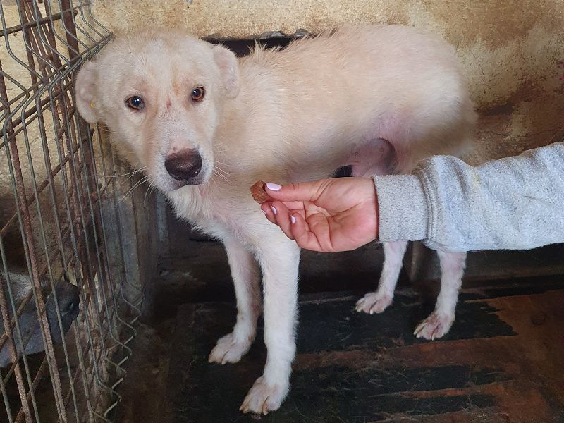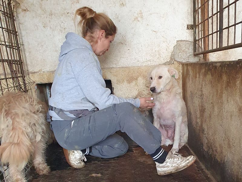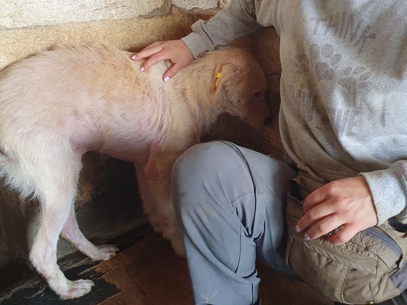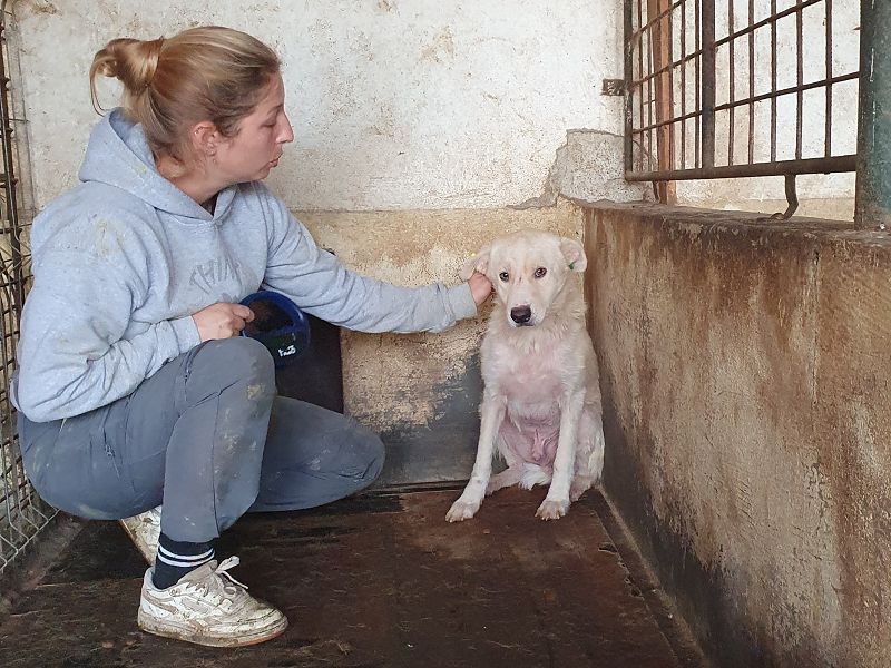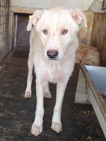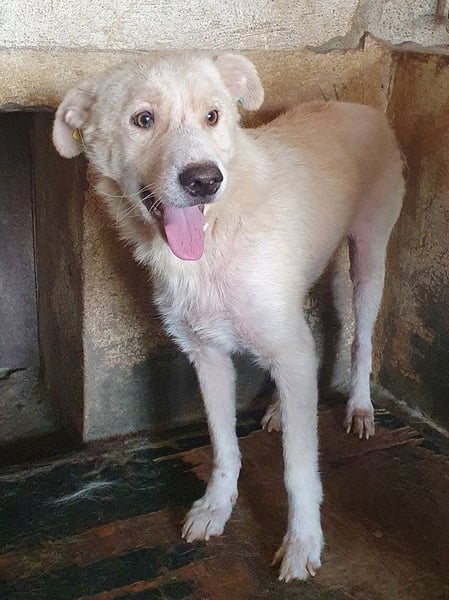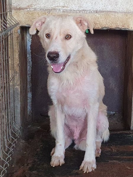 Micha begegneten wir im September 2025. Ein völlig erschöpfter, zurückhaltender Rüde, der im kleinen, dunklen Ankunftszwinger sitzt – eng, kalt und ohne Rückzugsort. Er wirkte müde und resigniert, lag still in der Ecke, während ihn ein kleiner Rüde im Zwinger in Schach hielt. Micha ist völlig fertig. Er ist viel zu dünn und von Räude befallen, was man seinem Körper sehr ansieht. Als wir uns ihm vorsichtig näherten, kam er langsam auf uns zu – zaghaft, aber mit einem Funken Hoffnung in den Augen. Er ließ sich überall anfassen, blieb ruhig und zeigte dabei nur Sanftmut.